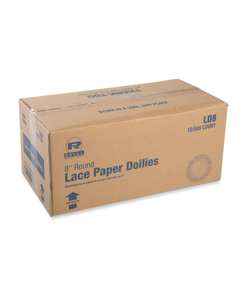 Add to cart Cambridge Lace Doilies, Round, 8", White, 1,000/Carton $95.77 Add an element of elegance to food and beverage presentation. May be used for displaying pastries and desserts in bakeries and restaurants or as a...