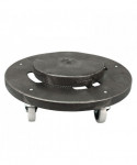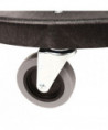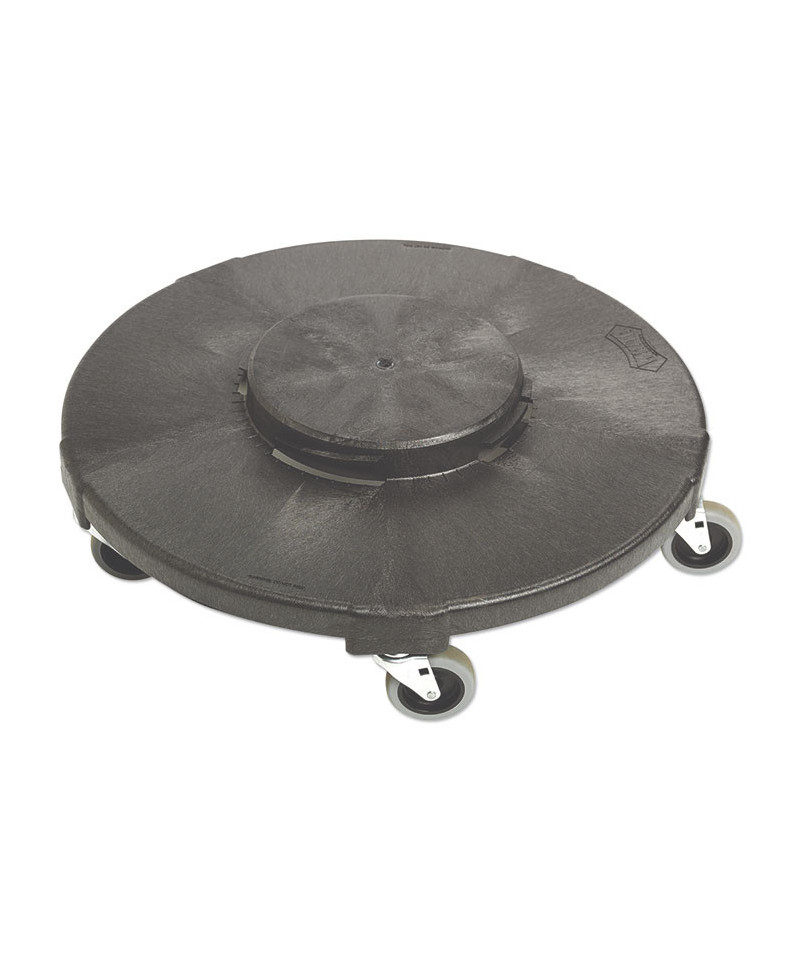 Wheeled dolly allows heavy waste containers to be transported with ease. Molded from structural foam for extreme durability. Quiet casters allow for cleaning during work and office hours. Fits to 20, 32, 44, and 55-gallon containers. Vented to prevent suction between dolly and container for easy twist off removal.