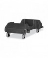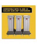 Slim Jim® Resin Dolly is designed to support and transport Vented Slim Jim® containers smoothly and efficiently through any commercial facility. Promotes recycling and improves productivity by offering the ability to transport multiple waste streams at one time. Features a side clip-on connection that allows you to train several dollies together for collection and transportation purposes. Foot pedal release makes disconnecting dollies quick and easy while structural foam construction ensures maximum durability in commercial environments.