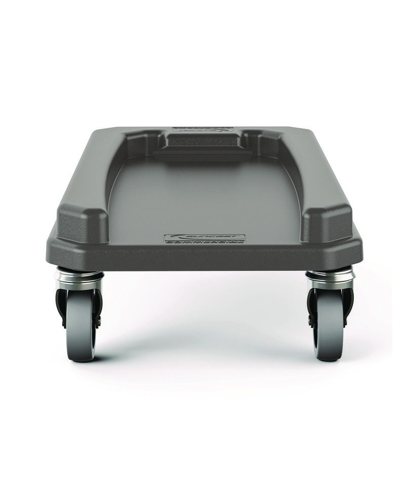 The Suncast Commercial® resin trash can dolly is designed to securely hold both the handle and non-handle versions of the Suncast Commercial® 23-gallon slim trash can. The easy slide-in design allows you to quickly remove or secure your trash can with ease. Complete with four rolling, quiet riding casters, which provide a smooth ride. The resin construction is durable and resilient whether you are in damp or dry conditions, which makes this the perfect accessory for your workspace.