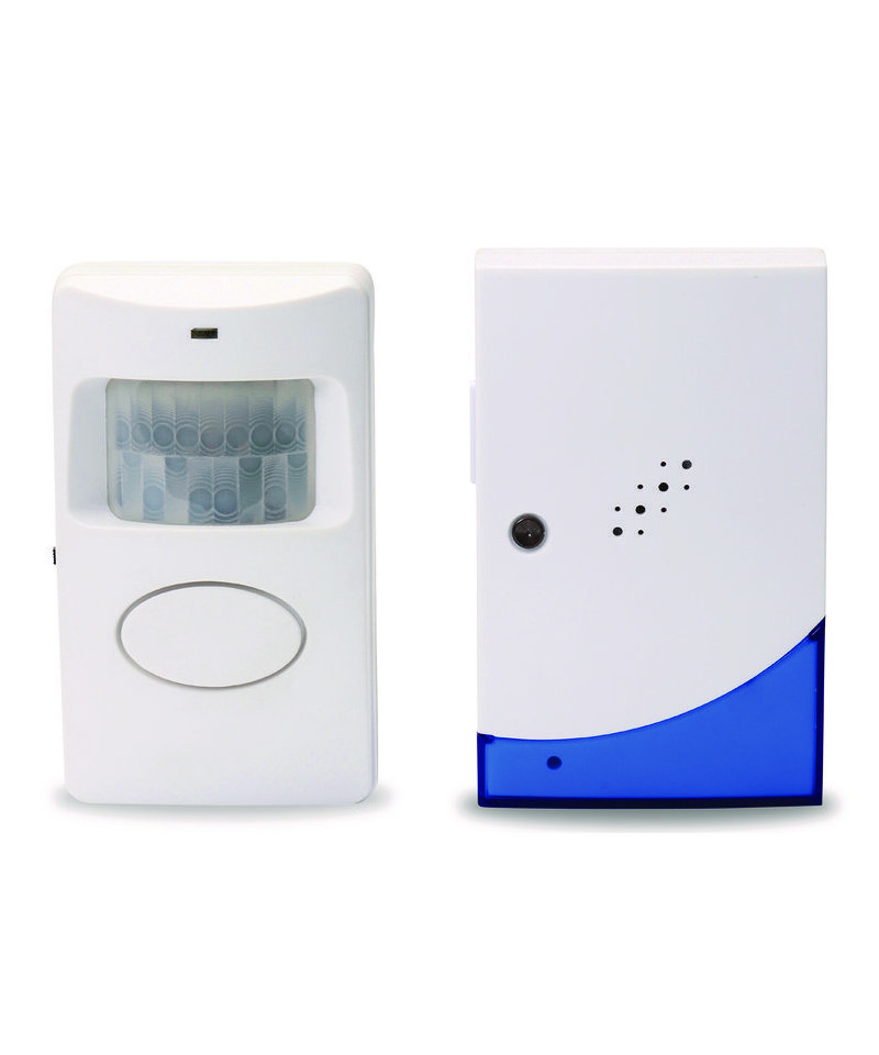 Pleasant "ding-dong" sound alerts employees when visitors enter or exit. High/low/off adjustable volume control. Light-reactive sensor has sensing distance up to 15 ft. Wall mountable with angle-adjustable mounting bracket (included). Can be used with door open or closed.