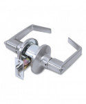 Entry Lever requires keyed entry from outside and features a push button lock on inside. Most commonly used for exterior doors and private offices. Light duty tubular, grade two lever. Fits doors 1.75" to 2" thick.