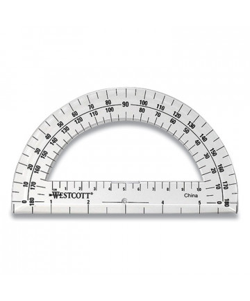 Clear plastic protractor is ideal for all young mathematicians. Protractor features an open center. Students will easily be able to identify angles from 0 to 180 degrees with the protractors sharply defined graduations which is easy to read and helps minimize visual errors.