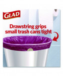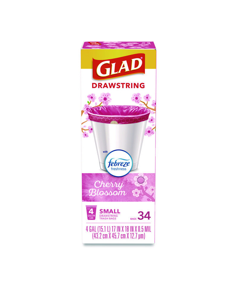 Glad® OdorShield® Drawstring Small Trash Bags with Febreze provide strength plus odor control, to keep your home smelling fresh. These small garbage bags are made with OdorShield® technology and Febreze freshness to provide continuous odor neutralization, based on time lapse technical evaluation. Featuring printed design around the internal ring of the bag, these trash bags add an aesthetic touch to any room when it is folded around the edge of the can. These scented trash bags fit small size trash cans and are great for in the bathroom, in home office, bedroom and laundry room.
