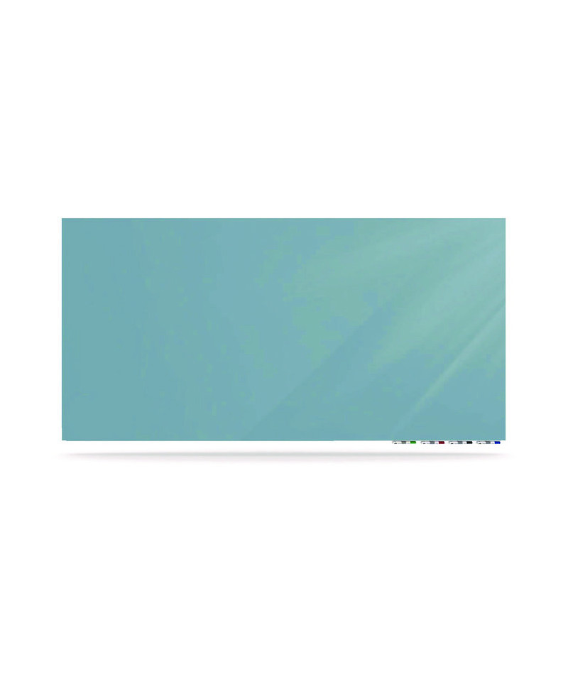 Aria Low-Profile Frameless Magnetic Glassboard, 60" x 36", Denim Blue Surface