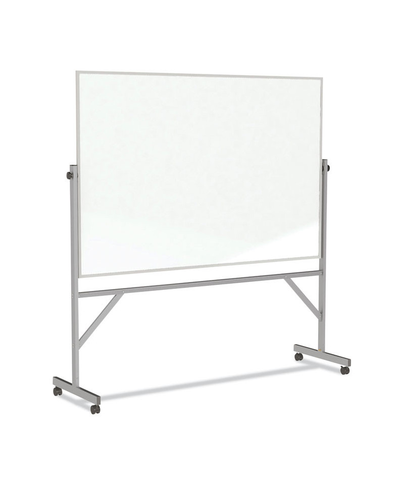 Constructed for strength and durability, Ghent's Reversible Magnetic Porcelain Whiteboard with aluminum frame and stand is a versatile mobile communication tool for a range of environments. The scratch- and dent-resistant porcelain-on-steel surface ensures that your dry erase board never absorbs ink, eliminating the possibility of staining and ghosting; and as the surface is magnetic, you can also incorporate magnetic clips, characters and a variety of board accessories to accomplish any number of display and instructional goals. The reversing mechanism simplifies flipping from one surface to the other, and the strong steel positioning locks clamp-down securely, allowing you to set the surface fully vertical or to any angle in-between. Robust aluminum frame and stand deliver reliable performance, and the stand's leg braces provide extra stability. Twin-wheel swivel casters keep you mobile; and by making use of the two locking casters, you can keep the board in place where you intend to use it. Ships to you in Ghent's worry-free packaging, which is designed specifically for keeping mobile dry erase boards safe during shipping.