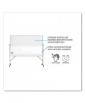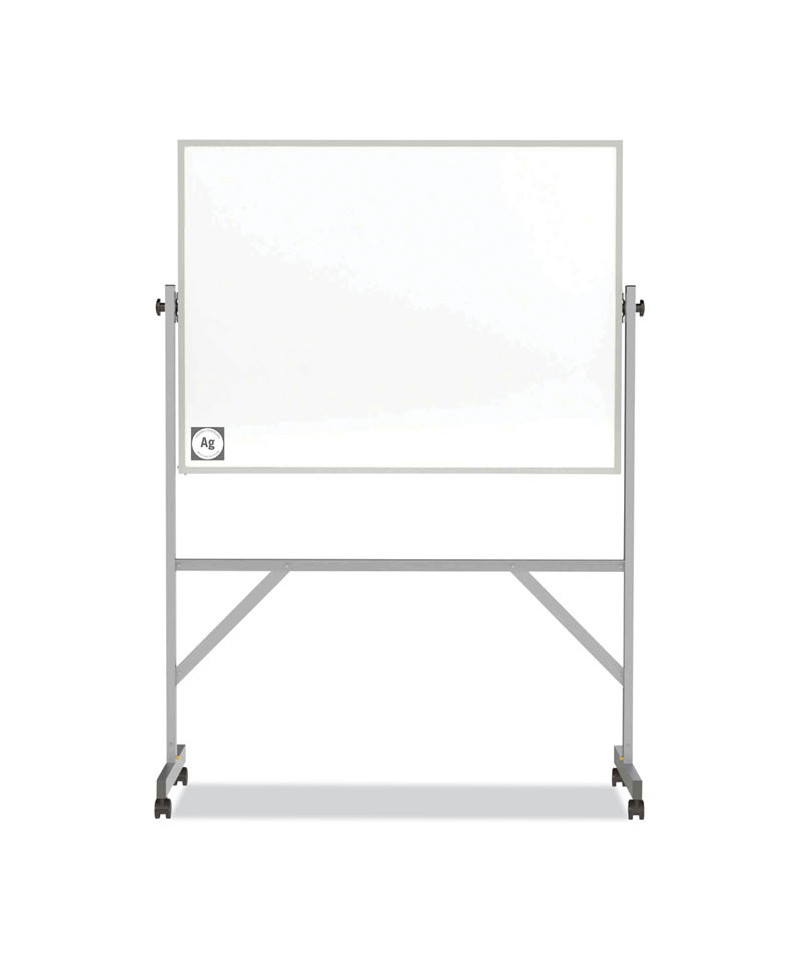 Reversible Magnetic Hygienic Porcelain Whiteboard with aluminum frame and stand is the perfect solution for high-touch, high-use environments where mobility is desired. The traditional functionality of a mobile, magnetic, reversible whiteboard combines with a clean, next-generation writing surface to take whiteboard performance to the next level. The porcelain-on-steel surface features embedded micro-silver particles that are slowly released over the lifetime of the product to protect it from bacterial and viral contaminants-contaminants are eliminated within 24 hours of contact. Scratch- and dent-resistant surface also ensures that your dry erase board never absorbs ink, eliminating the possibility of staining and ghosting. As the surface is magnetic, you can incorporate magnetic clips, characters and a variety of board accessories to accomplish any number of display and instructional goals. Strong aluminum frame and stand deliver reliable durability, and a robust, locking surface-reversing mechanism makes it easy to flip and set the chosen board surface in place. Twin-wheel swivel casters keep you mobile; and by making use of the two locking casters, you can keep the board stable where you intend to use it. Ships to you in Ghent's worry-free packaging, which is designed specifically for keeping mobile dry erase boards safe during shipping.