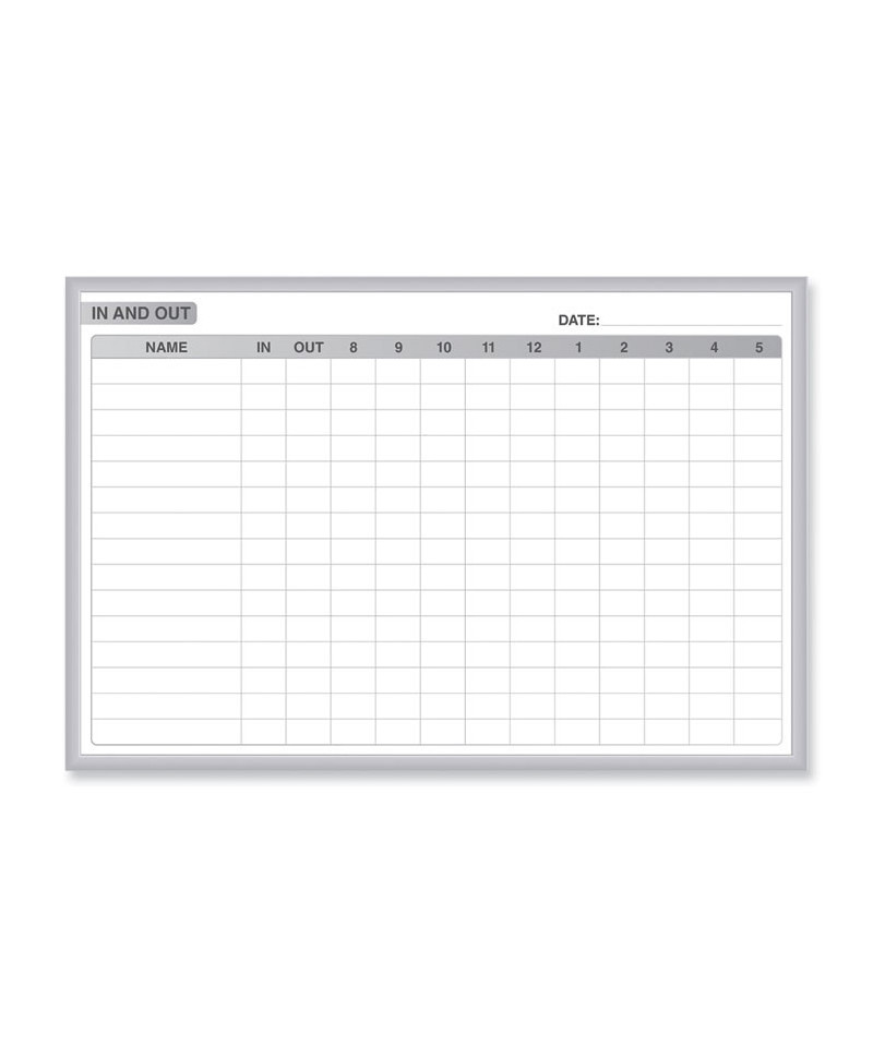In/Out Magnetic Whiteboard, Personnel In/Out Tracking Chart, 36" x 24", White/Gray Surface, Satin Aluminum Frame