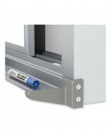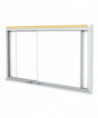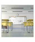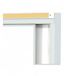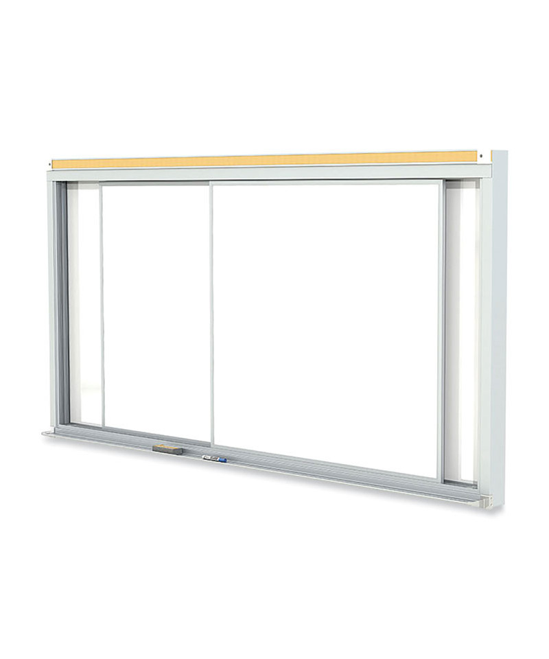 Ghent's Horizontal Slider provides a panel system with multiple dry-erase whiteboard panels to serve a multitude of needs, doubling the usable space. Two top-suspended panels glide on nylon rollers for smooth operation. The porcelain-on-steel writing surface creates a durable, high-performance whiteboard. It accepts magnets and resists scratches and stains. The board is constructed with heavy-duty anodized aluminum trim and includes a 2 natural cork map rail. Porcelain writing surface carries Ghent's 50-year guarantee.