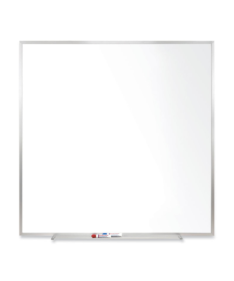 Magnetic Porcelain Whiteboard with Aluminum Frame, 48.5" x 48.5", White Surface, Satin Aluminum Frame