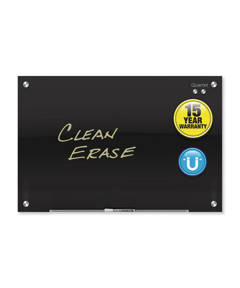 Whiteboard features a highly durable tempered-glass surface. Designed for frequent use, it resists ghosting and staining. Write on glass with dry-erase markers. Frameless, glass design matches any office interior.