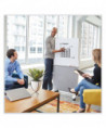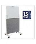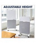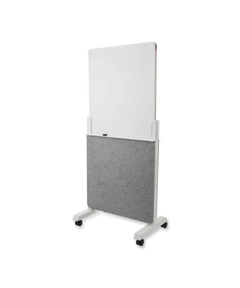 Use the Quartet® Agile Easel for team collaboration. The top of the easel has double-sided glass boards for writing and brainstorming, while the bottom has dual-sided polyester panels to help provide more privacy. Place this portable easel in small, open-concept rooms to create private, interactive workspaces. Double-sided dry-erase surfaces give you more space to write and collaborate. Non-porous glass board is easy to clean and resists stains and ghosting. Adjust the height of the easel up to 60.5, or collapse it down to 41 for storage. Wheels make it simple to move easel from one room to the next and lock in place when ready for use. Glass whiteboard measures 25.5 x 28.88. Full easel measures 27.5 x 60.5. Comes with two accessory trays and one dry-erase marker.