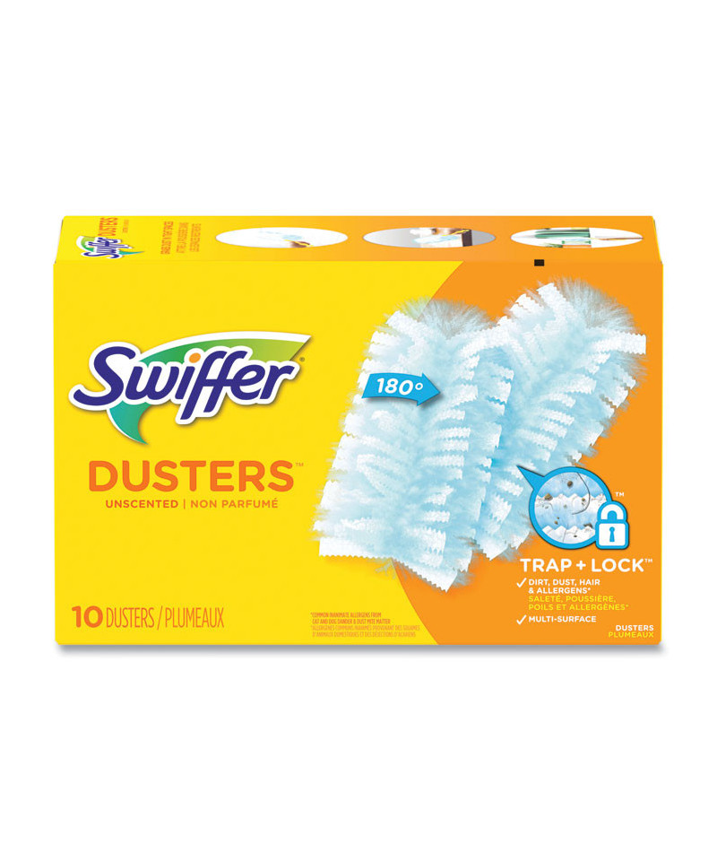Swiffer Dusters TRAP + LOCK dust wherever dust shows up, including fan blades, blinds, car interior, keyboard vents, bookcases, and more. They are made with specially coated fibers that grab onto dust and don't let go. Enjoy the lasting freshness of Gain as you clean. Leaves behind up to one hour of freshness after initial product use.