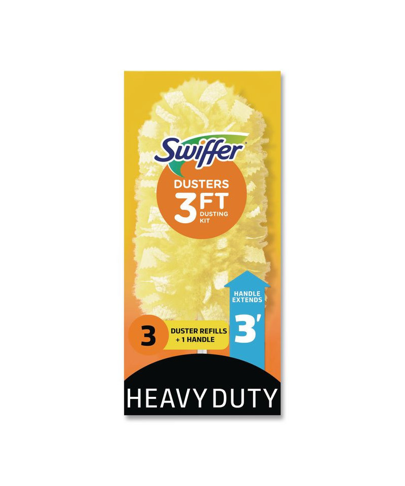 Now it's easier than ever to get to those hard-to-reach places. Pivoting head can be adjusted and locked into place for cleaning angled surfaces such as ceiling fans, cabinet corners and baseboards. Refill dusters sold separately. One handle and three dusters per box.
