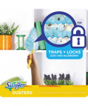 Swiffer Dusters TRAP + LOCK dust wherever dust shows up, including fan blades, blinds, car interior, keyboard vents, bookcases, and more. They are made with specially coated fibers that grab onto dust and don't let go. Enjoy the lasting freshness of Gain as you clean. Leaves behind up to one hour of freshness after initial product use.