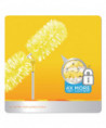 Handle extends up to 6 feet allowing you to reach more areas. Two duster attachments rotate and lock at multiple angles to expand your range. Great for use on fans, bookcases and light fixtures. Uniquely designed to Trap + Lock dust from every direction. One handle and four dusters per kit.