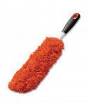 Make quick work of dusting chores with this comfort-grip duster. Fluffy fibers on one side tackle light dusting duties, and ridges on the other dispense of heavier layers of dust easily. A 12" duster head covers larger surfaces in less time, while a slim profile ensures that even the tiniest nooks and crannies get clean. Removable head for machine washing when needed.
