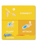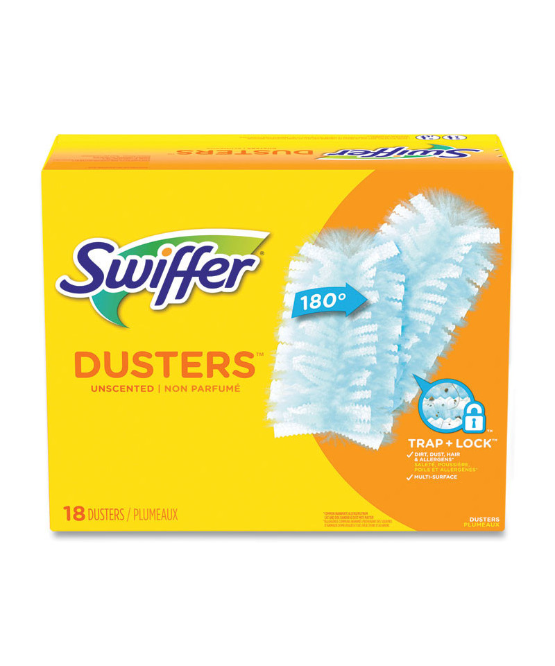 Swiffer Dusters TRAP + LOCK dust wherever dust shows up, including fan blades, blinds, car interior, keyboard vents, bookcases, and more. They are made with specially coated fibers that grab onto dust and don't let go. Enjoy the lasting freshness of Gain as you clean. Leaves behind up to one hour of freshness after initial product use.