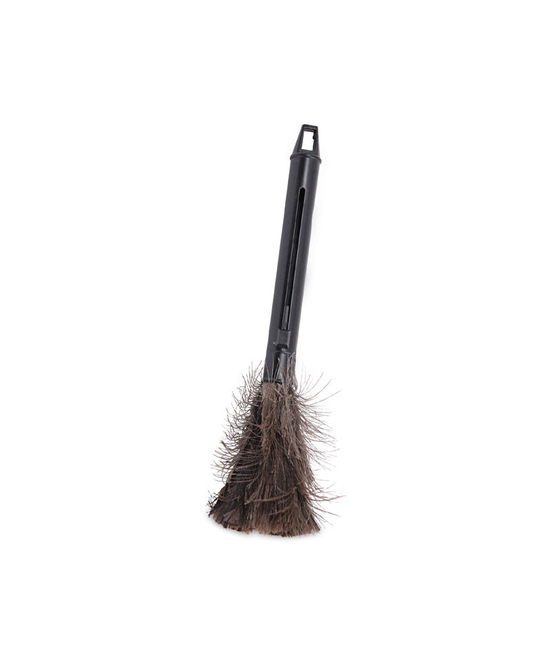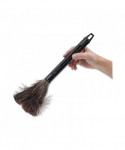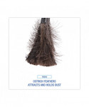 Economical ostrich chick feather duster. The real feathers attract and hold dust until shaken. Black retractable handle extends from 9 to 14". Feathers fully retract into handle for easy storage and transport. Smooth finish, black handle resists dust and includes a hang-up or lanyard hole for convenient storage. Comfortable and lightweight design for the ultimate portability. Great for dusting on a variety of surfaces without harsh chemicals or causing scratches to the surface. Flexible design is easily maneuvered around objects.