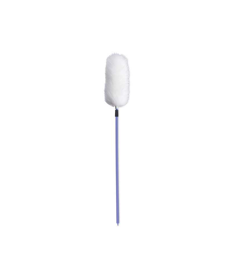 Genuine lambswool duster quickly lifts dust particles without chemicals. Dust and debris stick like a magnet and particles retain until shaken. Safe for all delicate and hard surfaces-will not scratch or mar. Washable and easy to clean by spinning the handle. Plastic handle with hang-up hole for convenient storage. Ultra, lightweight design makes reaching and dusting for extended periods of time comfortable.