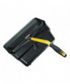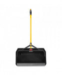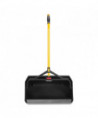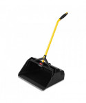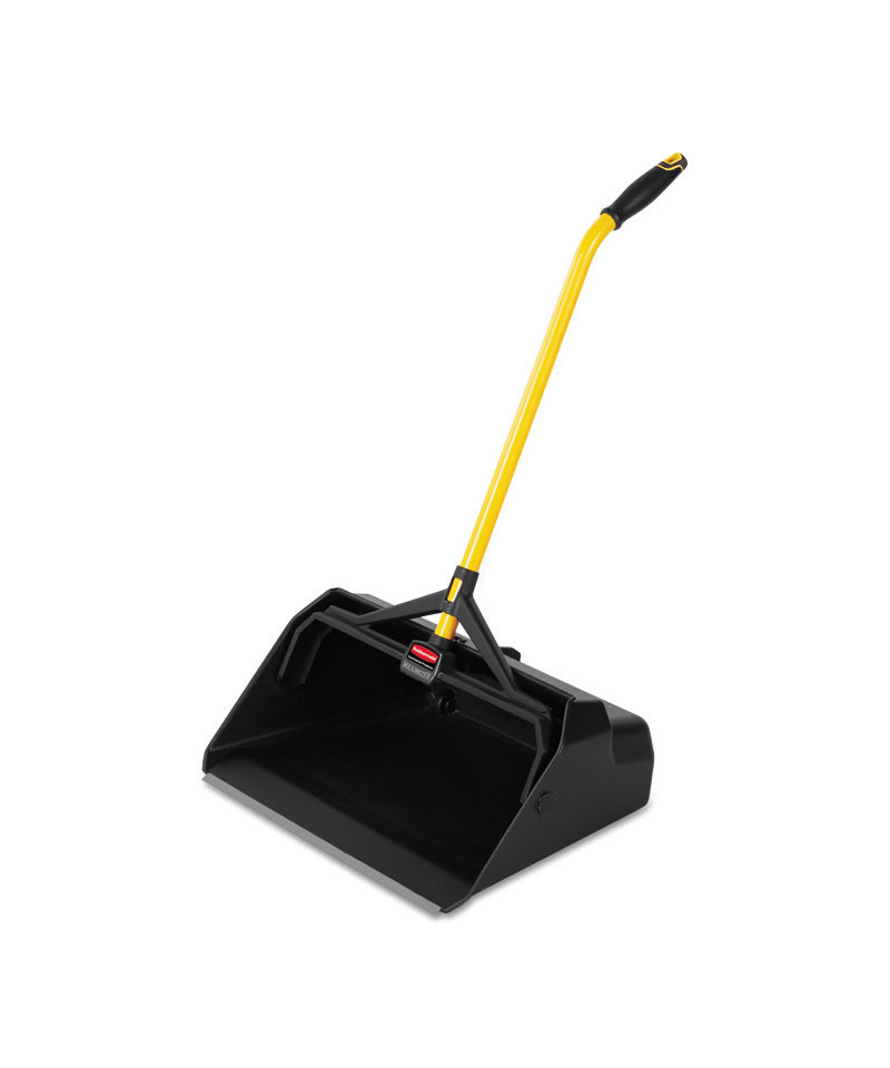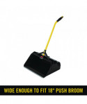 Extra large opening is wide enough to fit an 18" push broom. Huge storage capacity reduces number of trips to empty the pan. Locking latch for secure lifting and emptying loads of up to 25 lb. Angled, ergonomic handle for reduced strain when sweeping debris into pan.
