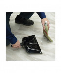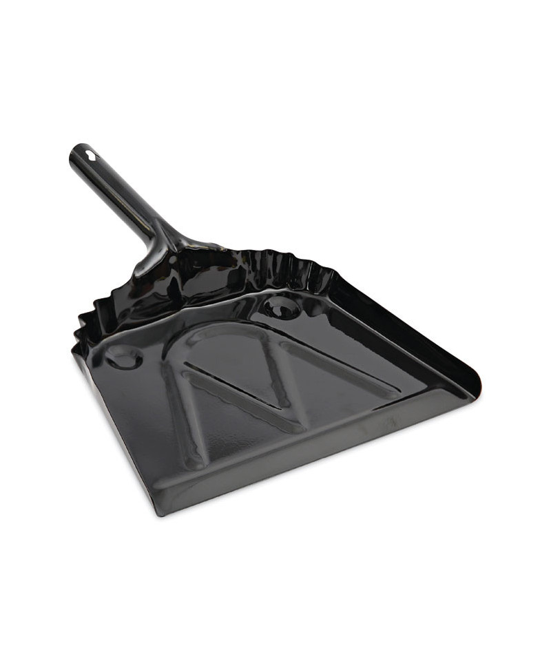 Durable, black, metal dust pan is made from a single piece of steel for the ultimate in strength. Constructed from strong, 20-gauge steel and protected by a baked enamel finish that is meant to withstand heavy use. Portable and sturdy dust pan provides long service life, even with extended use. Includes a built-in hang-up or lanyard hole for convenient storage.