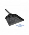 Durable, black, metal dust pan is made from a single piece of steel for the ultimate in strength. Constructed from strong, 20-gauge steel and protected by a baked enamel finish that is meant to withstand heavy use. Portable and sturdy dust pan provides long service life, even with extended use. Includes a built-in hang-up or lanyard hole for convenient storage.