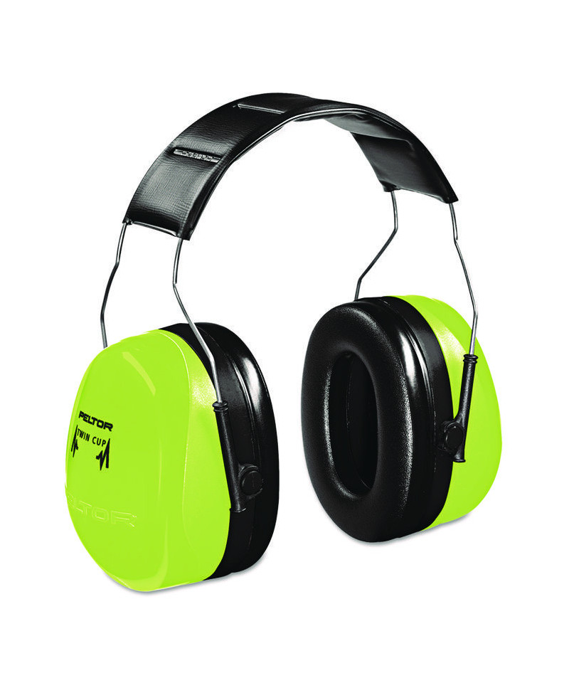 Twin cup design minimizes resonance, thus achieving maximum high and low frequency attenuation. Pivoting earcups for optimum fit. Padded steel headband with four point suspension for extra comfort.