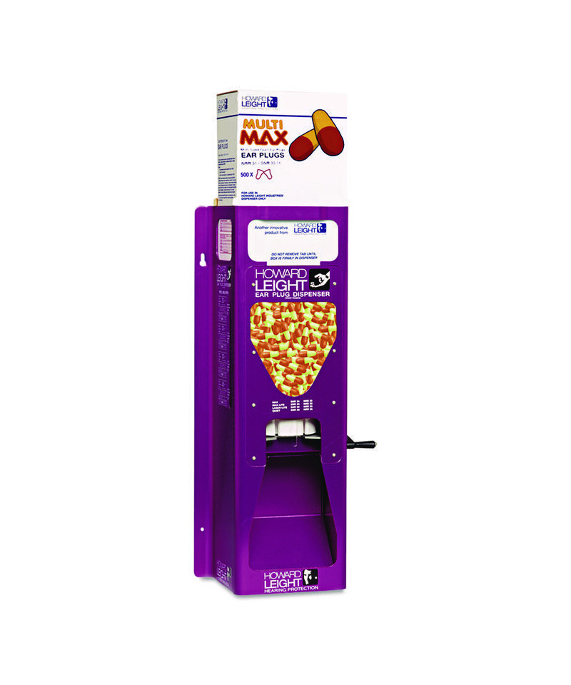 Mount on wall for easy access. Crank handle to dispense earplugs. Ideal for large factories and process industries. Holds 500 pairs of Howard Leight earplugs: Max, Max Lite, Laser Lite, MultiMax, Matrix™ and Quiet.