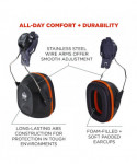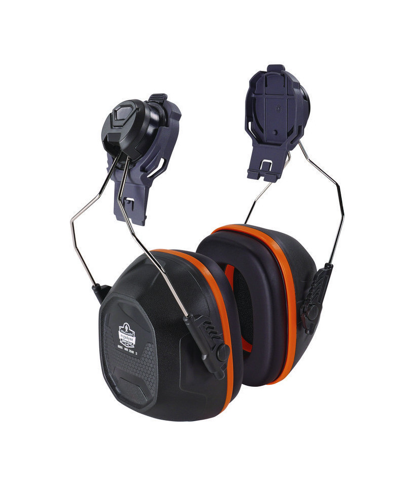 The Skullerz 8880 Hard Hat Mounted Earmuffs are designed for comfort and noise reduction both on and off the job site. These noise-canceling earmuffs seamlessly integrate into Skullerz Hard Hat and Safety Helmet dedicated side accessory mounting slots for a secure fit. The earcups are designed for all-day, comfortable wear and are also adjustable and can be tilted up, down or stored onto the side of the hard hat or safety helmet to create a customized fit. The earmuff's ABS outer construction is durable for long-lasting protection in tough environments and the polished stainless steel wire arms offer smooth adjustment and increase longevity of the earmuffs. These mounted earmuffs are tested to Method for the Measurement of Real-Ear Protection of Hearing Protectors and Physical Attenuation of Earmuffs.