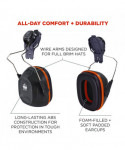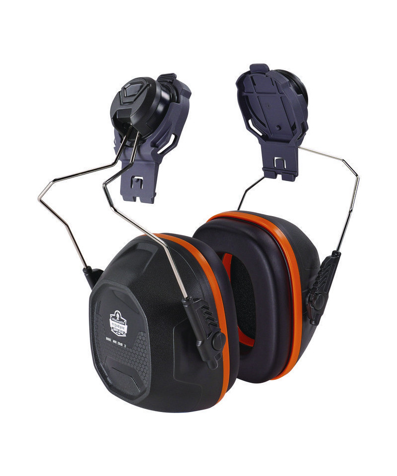 The Skullerz 8880 Hard Hat Mounted Earmuffs are designed for comfort and noise reduction both on and off the job site. These noise-canceling earmuffs seamlessly integrate into Skullerz Hard Hat and Safety Helmet dedicated side accessory mounting slots for a secure fit. The earcups are designed for all-day, comfortable wear and are also adjustable and can be tilted up, down or stored onto the side of the hard hat or safety helmet to create a customized fit. The earmuff's ABS outer construction is durable for long-lasting protection in tough environments and the polished stainless steel wire arms offer smooth adjustment and increase longevity of the earmuffs. These mounted earmuffs are tested to Method for the Measurement of Real-Ear Protection of Hearing Protectors and Physical Attenuation of Earmuffs.