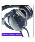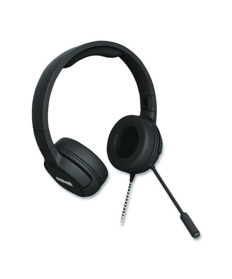 Maxell Kids Safe volume limiting wired headphone with boom style microphone features a 95 dB maximum safe listening level. The attached, flexible boom microphone provides improved communication, especially in louder environments. Full cup earpiece blocks background noise. Features a flexible headphone and chew-proof, extended length 6 ft cord. The Maxell Kids Safe Headphone comes with attached 3.5 mm plug and also includes a USB-C adapter for added connectivity flexibility. This headphone is feature-heavy with mute and volume control, as well as a built-in share port which allows two headphones to connect together and listen from the same audio source. Package also includes a resealable and easy-label plastic storage bag.