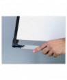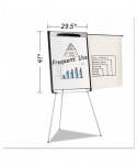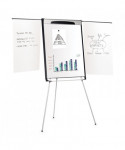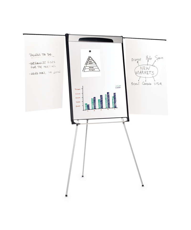 The Design Mobile Presentation Easel has a versatile base that delivers both great performance and mobility. The lacquered steel magnetic surface is ideal for frequent use, resists ghosting and staining. Equipped with a full length foldable marker tray that cleverly secures markers, the Design Presentation Easel holds any size of easel pad with its no-pinch pad retainer. Its steel base is both height and angle adjustable. It includes two magnetic extension bars that allow you to present up to three sheets of paper at one time.
