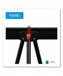 Telescoping metal legs adapt to floor or tabletop use while adjustable support brackets display materials at exactly the height you need. No-pinch pad retainer for fast and easy attachment; hooks slide to fit any type of easel pad.