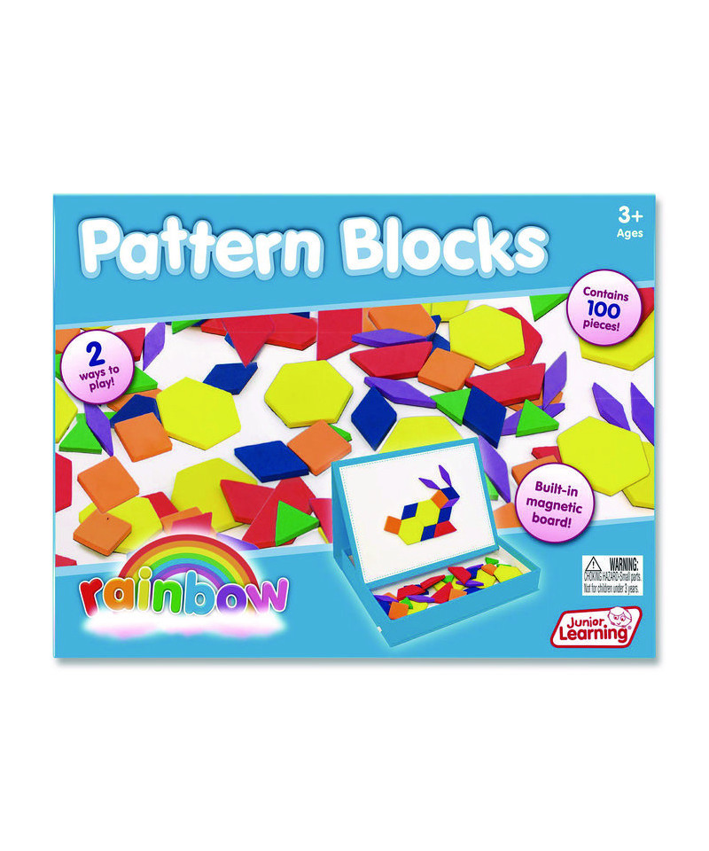 These brightly colored foam magnetic pattern blocks are ideal for reinforcing symmetry, geometry, visual perception, shape recognition, sorting, early problem-solving skills and fractions. Using standard geometric shapes, these blocks can be used across all age ranges by simply modifying the activity for a child. Includes a handy storage box with a built-in magnetic board, eight double-sided activities cards and 100 pattern block manipulative.