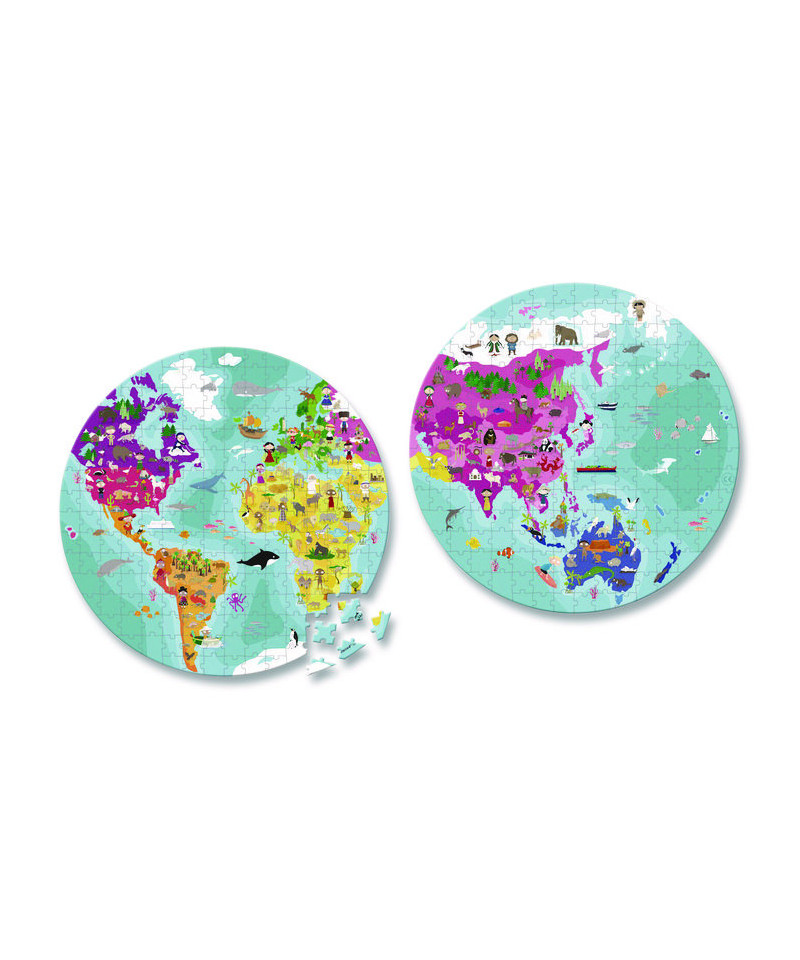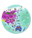 Geographic map puzzle to stimulate the mind and increase awareness of the world around us. Shows vibrant images of regional wildlife and famous sites. A great way to learn about the world. Suitable for kids who love puzzles and nature.