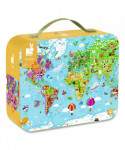 Geographic map puzzle to stimulate the mind and increase awareness of the world around us. Shows vibrant images of regional wildlife and famous sites. A great way to learn about the world. Suitable for kids who love puzzles and nature.