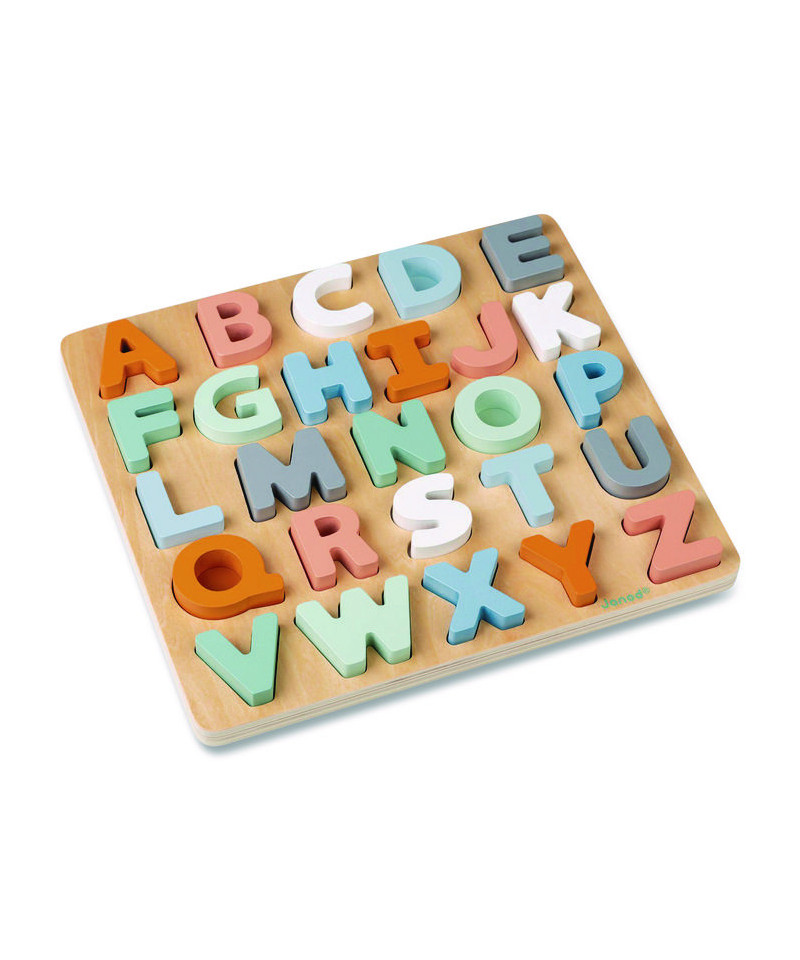 The Sweet Cocoon range offers soft-colored wooden toys, fostering creativity, motor skills, and joyful learning for toddlers. The chunky alphabet puzzle encourages letter recognition, matching colors and writing practice with included chalk.