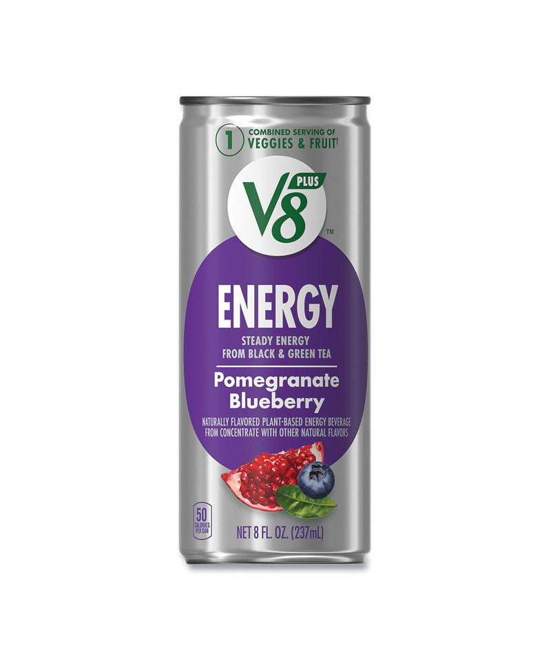 Gives you the plant-based energy you need. This energy drink features a blend of juices, plus natural black tea and green tea for roughly the same amount of caffeine as a cup of coffee. Non-GMO, gluten free, made with no added sugar, no high fructose corn syrup and no artificial sweeteners (except for diet varieties). Each 8 fl oz can contains one combined serving of vegetables and fruit, and it's an excellent source of B vitamins. Enjoy as part of a well-balanced breakfast, or take this energy drink with you on a busy day out. Can be a delicious workout drink. Enjoy chilled or at room temperature.