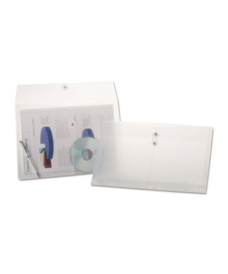 Horizontally oriented, booklet envelope is ideal for transporting files. Durable polypropylene construction is wear-, tear- and water-resistant. Fold-over flap with a string and riveted button closure helps ensure your documents are protected from the elements.
