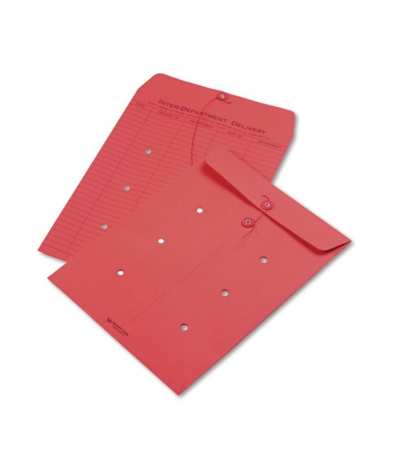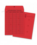 Colored Paper String and Button Interoffice Envelope, Number97, One-Sided Five-Column Format, 10 x 13, Red, 100/Box