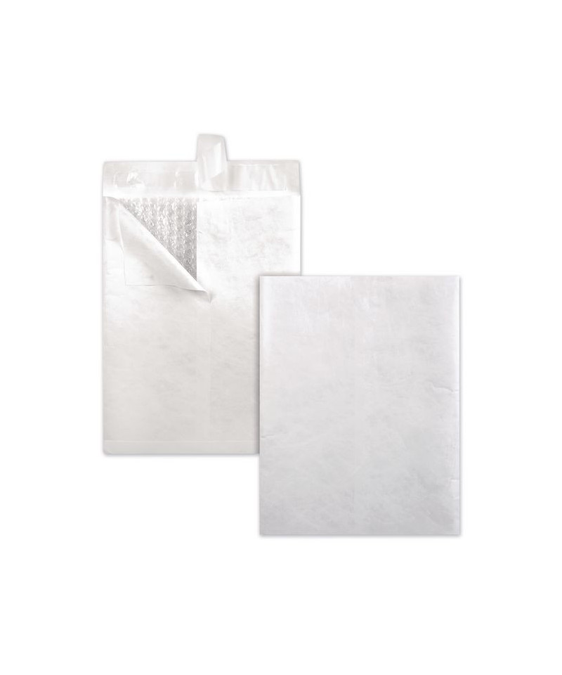 Package delicate materials inside the waterproof, rip-resistant Quality Park Redi-Strip® Bubble Mailers to ensure safe delivery. From documents to CD cases, most typical day-to-day mail can fit comfortably inside these envelopes. Their smooth, white construction is backed by durable paper made of DuPont™ Tyvek® material for extra support, and the self-sealing flaps are heavily gummed for a tight hold.