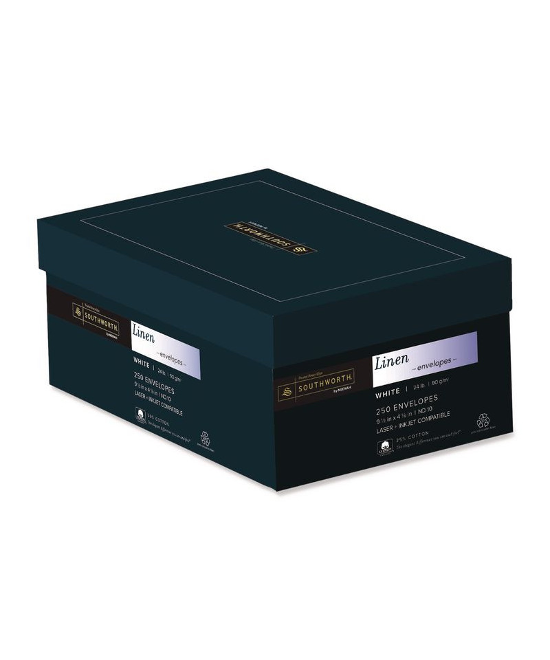 Make a professional first impression with fine, coordinated stationery. Rich, linen-cotton stock lends an element of elegance to any correspondence. Compatible with inkjet and laser printers and copiers. Gummed flap. The Southworth® collection of business papers is truly among the finest papers available for professional offices of any size. Communicate in style. From the first moment to enduring memory, cotton paper adds a touch of class, making first impressions more impressive with a distinct crispness and an unmistakable feel. Someone picking up your document will know before they even read a single word that there's something special to it. Cotton fiber also provides archival durability – it's the reason so many historic documents are still with us even centuries later.