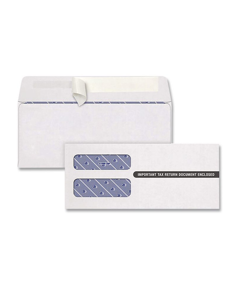 Go from desk to mail bin in minutes. Featuring a convenient Peel & Seal strip for no-fuss mail prep, Adams® 3-Up 1099-NEC Peel & Seal Double-Window Security Tint Envelopes are designed specifically for three-per-sheet 1099-NEC forms. Crafted from 24 lb white wove paper, each envelope features a security tinted pattern and precisely aligned windows to ensure that sensitive, confidential information is kept private, even when a sealed envelope is held up to the light. "Important Tax Return Document Enclosed" is printed on the front face.