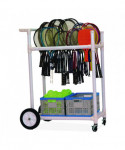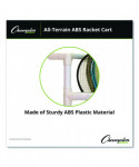 Carry your tennis supplies to the court with the new Champion Sports All-Terrain ABS Racket Cart. Made of sturdy ABS plastic, the cart provides smooth mobility over any surface with heavy-duty wheels. Neatly store and transport rackets and paddles on the hanging rack, and put your tennis balls, shuttlecocks and other accessories in the two durable plastic baskets. This cart assembles in minutes and can be used indoors or outdoors.