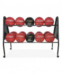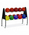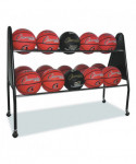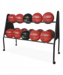 The Champion Sports 15-ball cart keeps all basketballs or playing balls neatly organized. The cart was designed to keep sporting balls within a player's reach and easily accessible. The heavy-duty chrome steel and solid triangular end frames allow for extra strength and stability. The wide base prevents tipping, and this cart easily rolls in and out of storage with its non-marring casters that protect the finish of your playing surface.