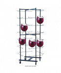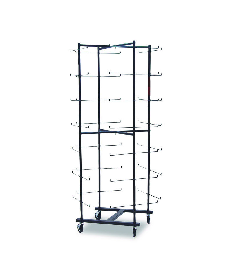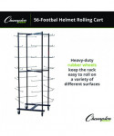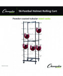 Perfect for keeping a high school or club equipment room neatly organized, this Champion Sports Rolling Football Helmet Rack easily stores up to 56 helmets. The football helmet rack is made from tough tubular steel, with an attractive and durable powder coated finish. Heavy-duty rubber wheels make it easy to roll from the gym to the storage room, or even out onto the field outside. Helmets are hung through the ear openings onto rigid steel rods, which feature safety curves at the ends.