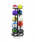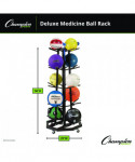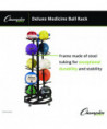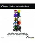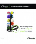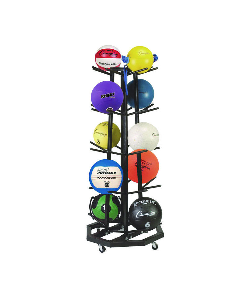 Designed specifically for storing, transporting and displaying medicine balls, the Champion Sports Deluxe Five-Row Mobile Medicine Ball Rack features a four-sided, vertical design with five rows of single-ball shelves, giving you enough space for a total of 20 balls of any size, any weight. Manufactured entirely of welded steel, the rack's ultra-durable frame and wide-stance base deliver superior stability when in use, and its smooth-rolling, ball-bearing swivel casters make it a breeze to maneuver throughout your gym.