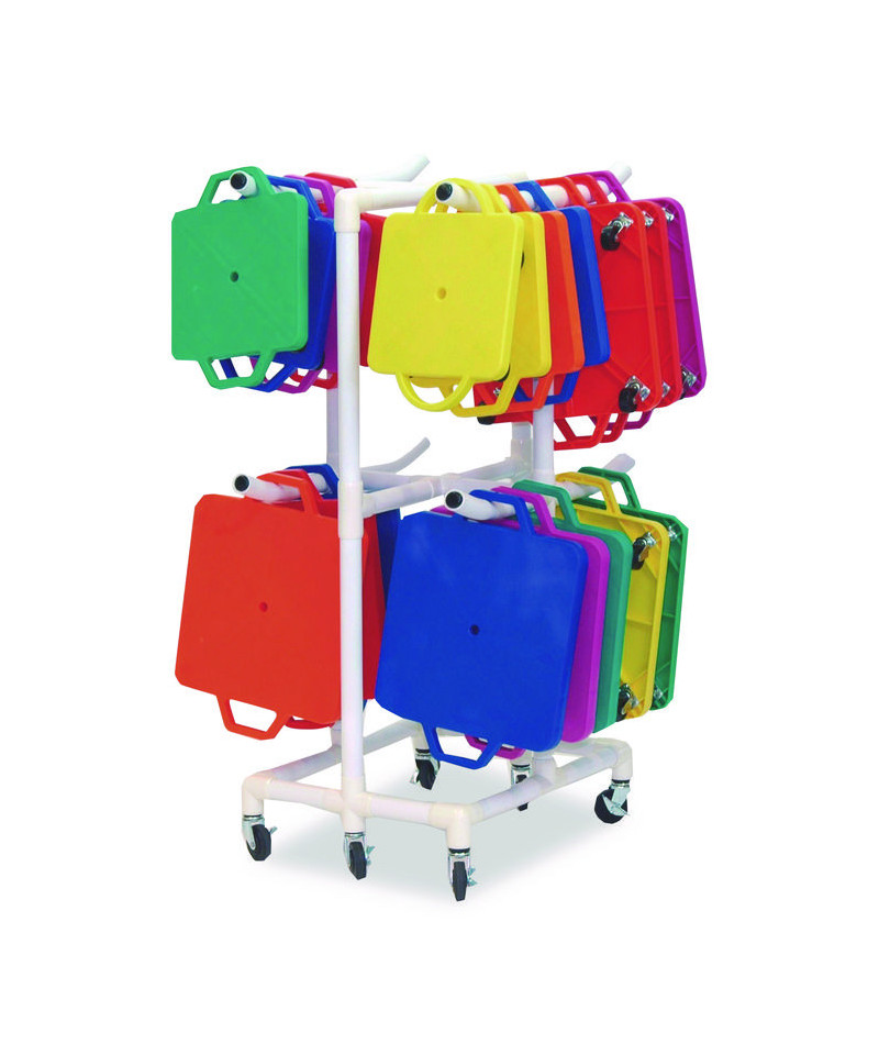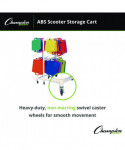 The Champion Sports Scooter Storage Cart helps you effortlessly transport scooters to any play area. Made of durable ABS plastic, this cart can hold up to 48 scooters in a hanging position by their handles. This cart sits on heavy-duty, non-marring swivel casters and a great way to keep your equipment clean and organized—making it a must for schools and recreational clubs.