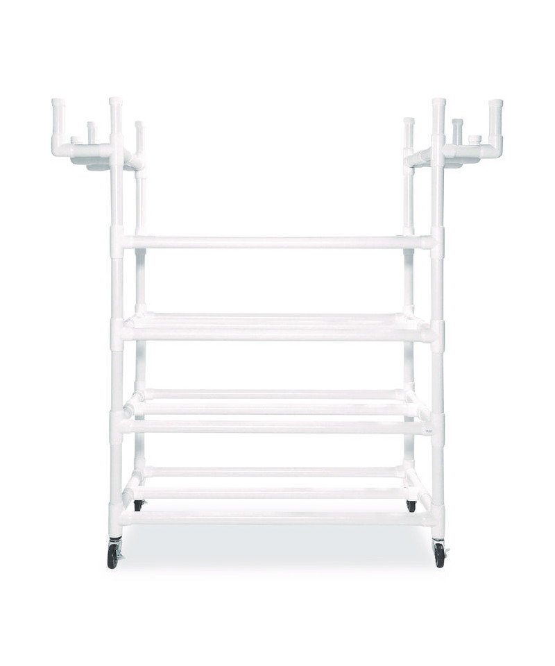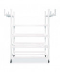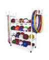 Keep your gym organized with the Champion Sports Equipment Cart. Made of durable plastic, and equipped with heavy-duty swivel casters, this versatile equipment cart can be maneuvered out of the way whenever you want to free up more floor space. The cart features four tiers that can hold up to 32 basketballs or 40 soccer balls, 150 jump ropes and 48 hoops. This handy cart helps organize and transport sports equipment with ease.